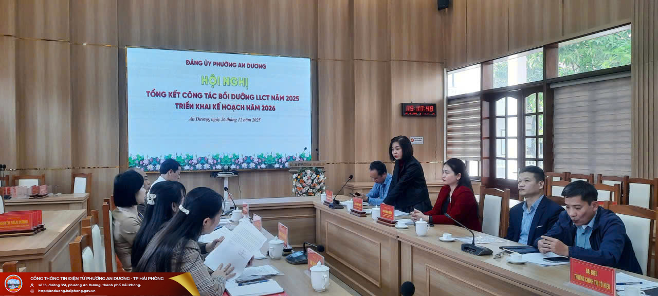 Chiều ngày 26/12, Đảng ủy phường An Dương tổ chức Hội nghị tổng kết công tác bồi dưỡng lý luận chính trị năm 2025 và triển khai kế hoạch năm 2026.