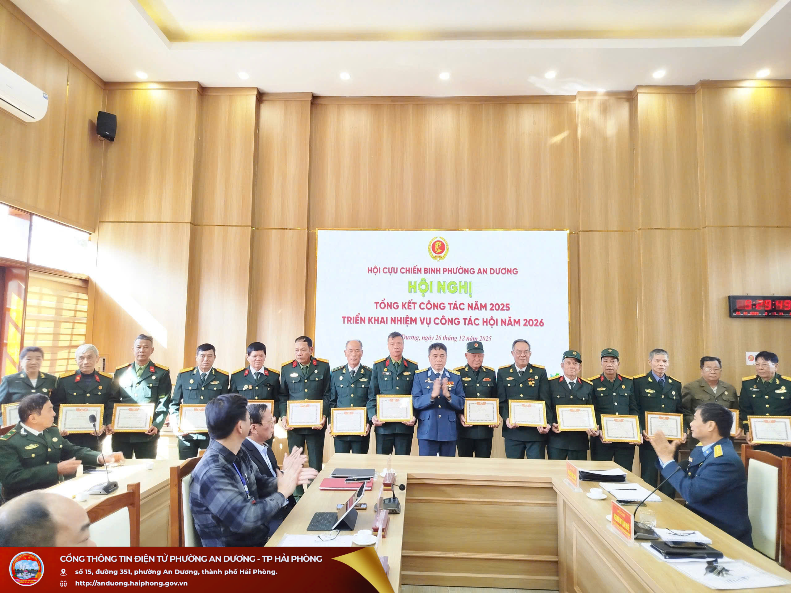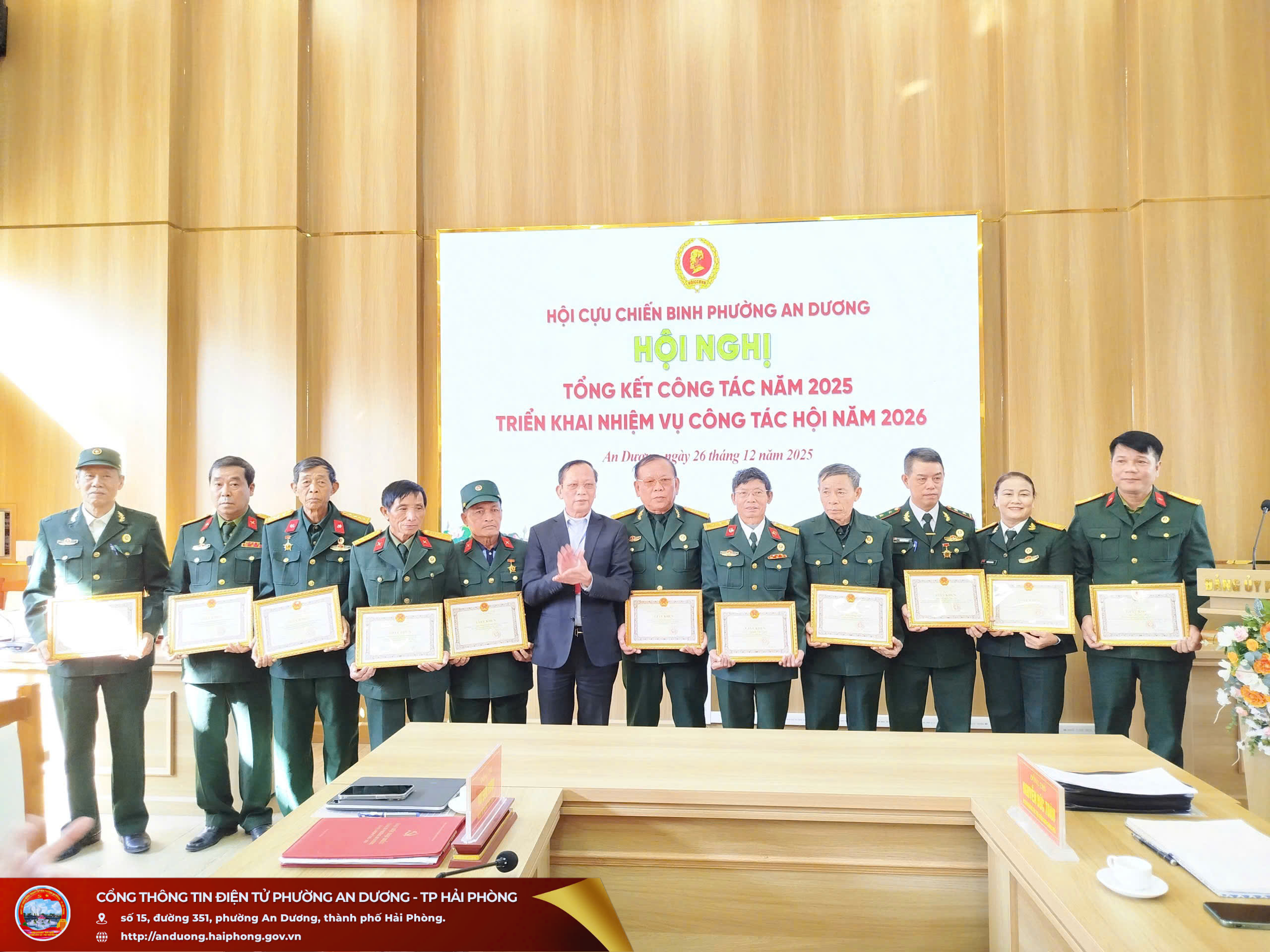 Nhân dịp này, Hội Cựu chiến binh thành phố, Ủy ban nhân dân phường, Hội Cựu chiến binh phường An Dương đã biểu dương, khen thưởng các tập thể và cá nhân có thành tích xuất sắc trong phong trào hoạt động Hội năm 2025, qua đó kịp thời động viên, khích lệ tinh thần trách nhiệm, gương mẫu và cống hiến của cán bộ, hội viên cựu chiến binh trên địa bàn.
