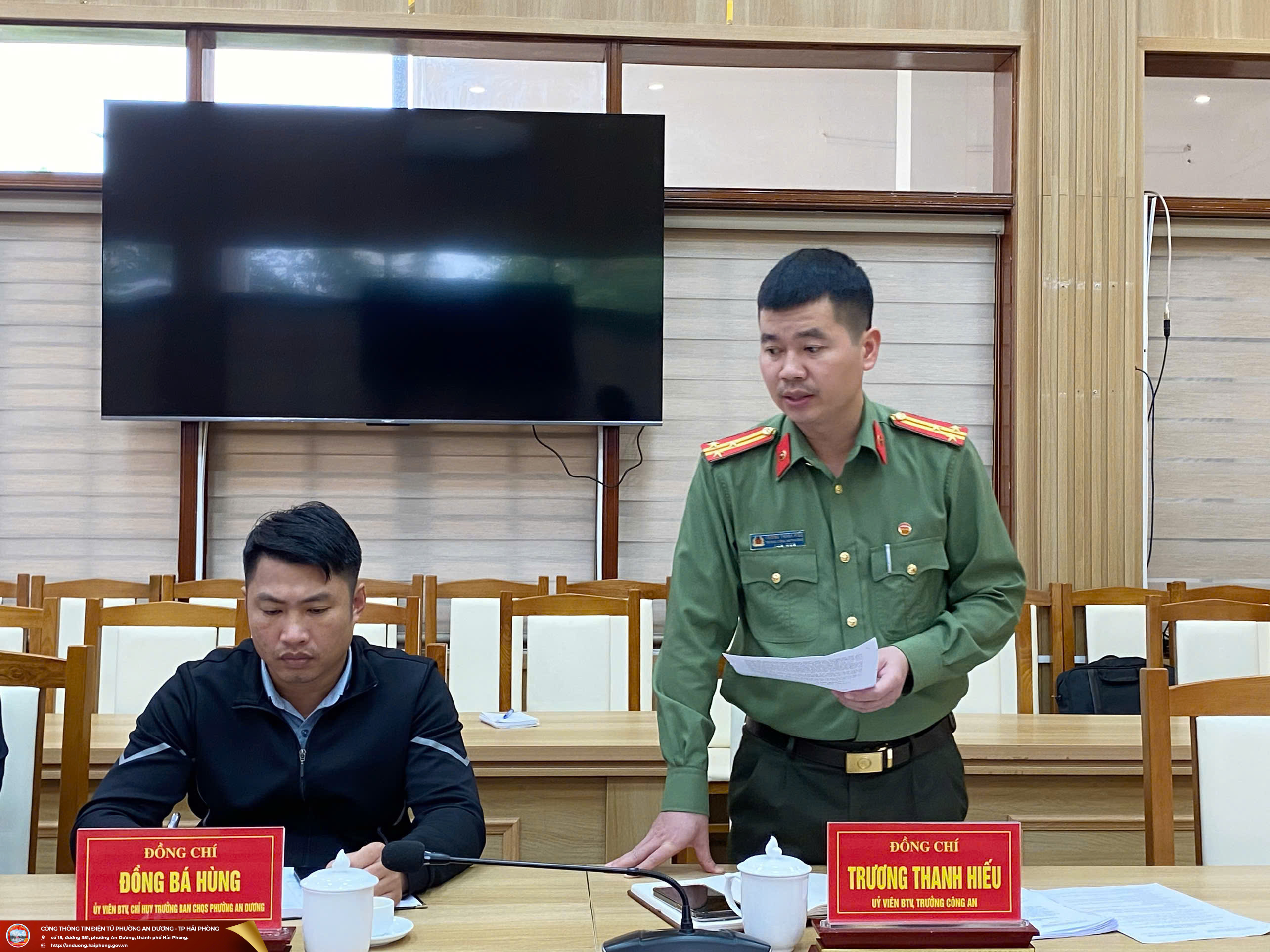 Tại Hội nghị, đồng chí Trương Thanh Hiếu - Trưởng Công an phường báo cáo kết quả triển khai thực hiện Nghị quyết số 01-NQ/ĐU ngày 23/9/2025 của Ban Chấp hành Đảng bộ phường về “Xây dựng phường An Dương trở thành phường không ma túy”. Trong thời gian qua, phường đã đẩy mạnh công tác tuyên truyền, vận động nhân dân nâng cao nhận thức về tác hại của ma túy; tổ chức 05 buổi tuyên truyền với 7.850 lượt người tham gia tại các trường học và tổ dân phố; treo 200 băng rôn, khẩu hiệu, phát tờ rơi tuyên truyền tại 52 tổ dân phố.