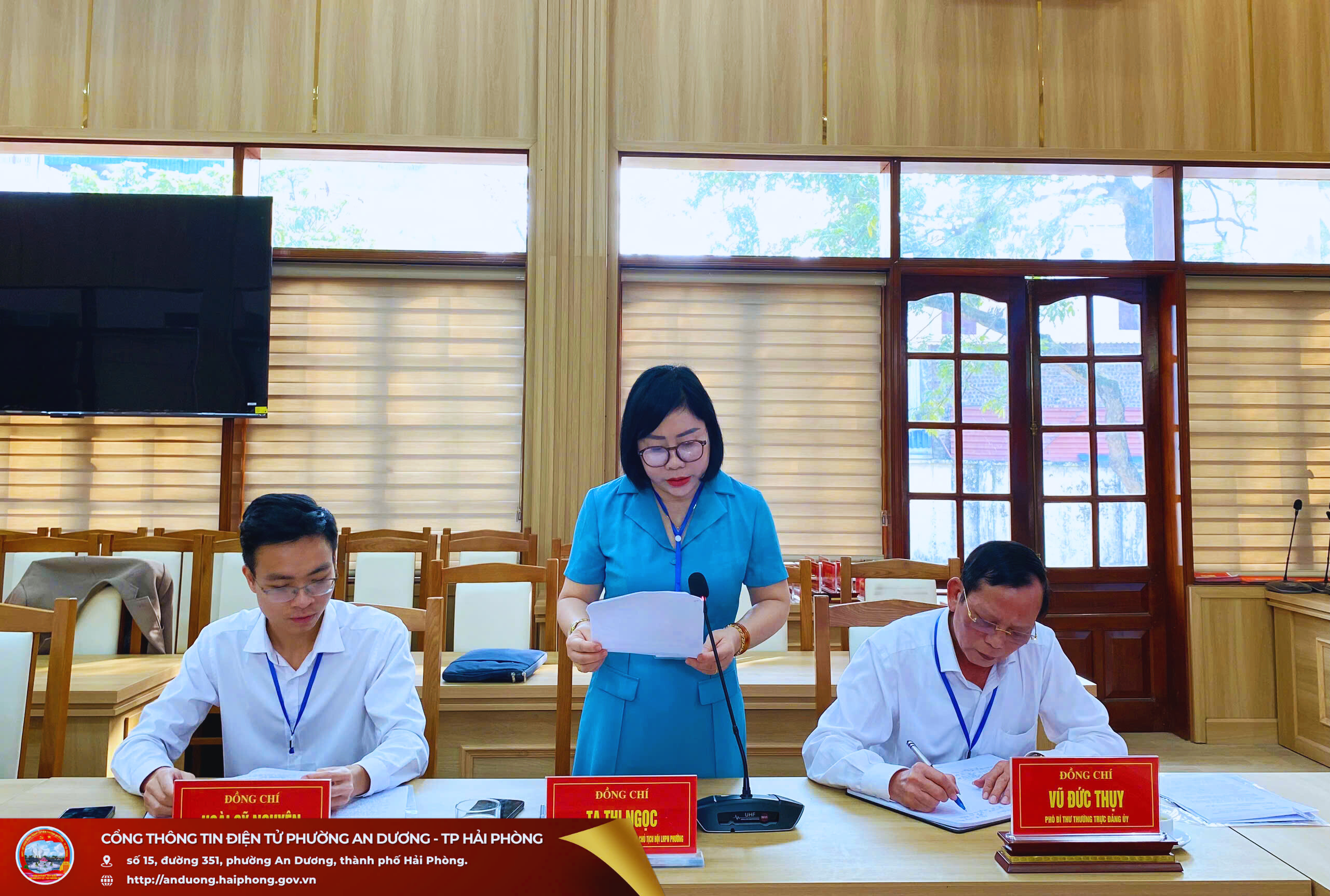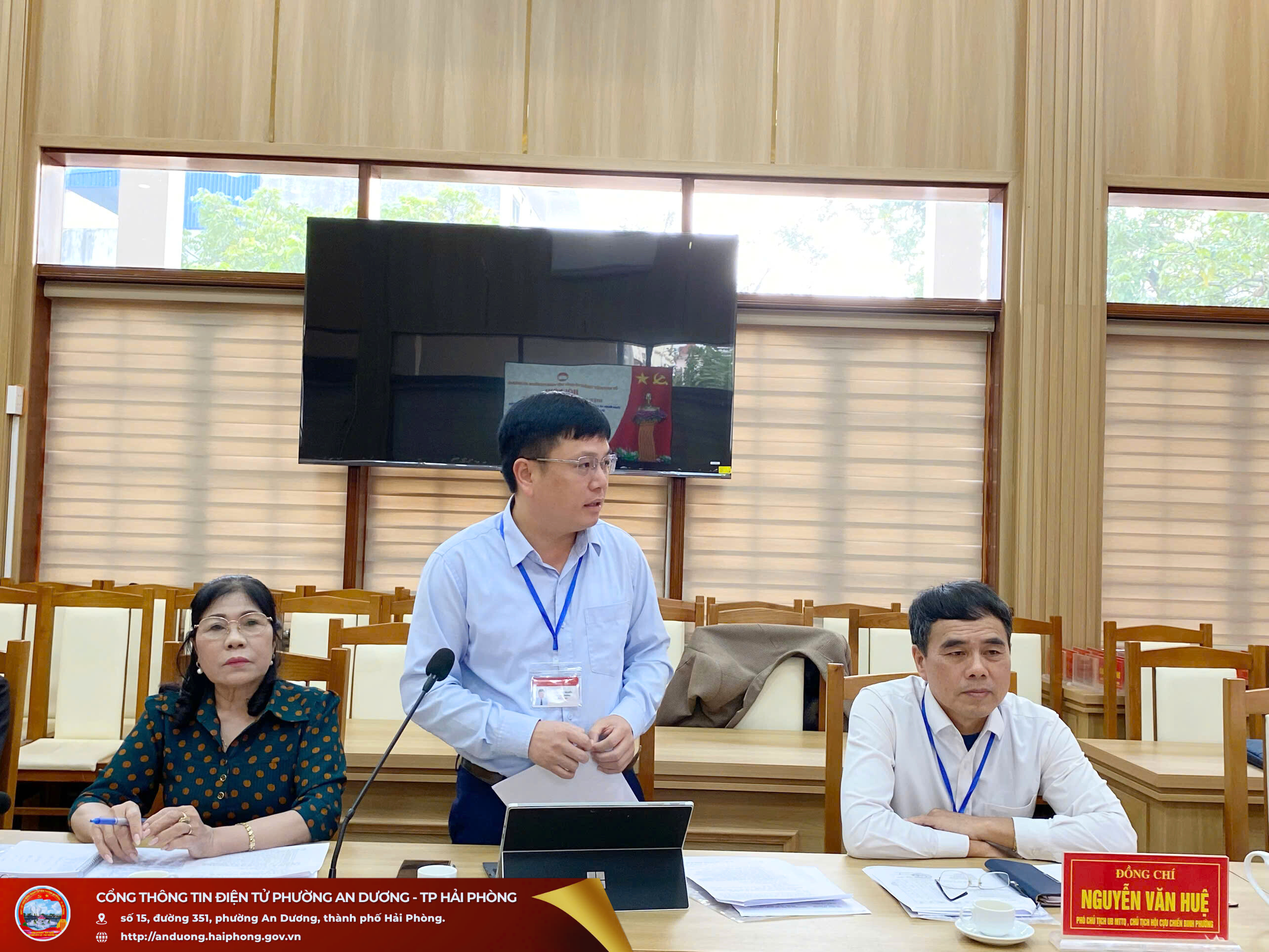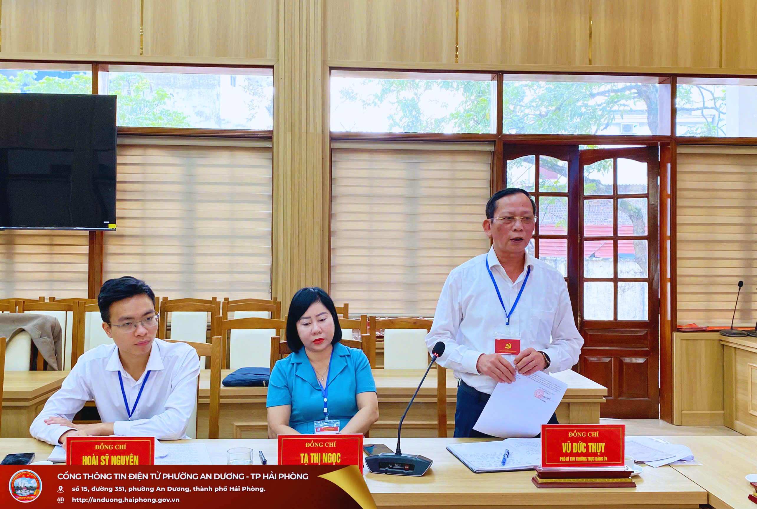 Đồng chí Vũ Đức Thụy - Phó Bí thư Thường trực Đảng ủy phát biểu tại hội nghịDự và chỉ đạo hội nghị có các đồng chí: Bùi Tiến Phong - Phó Bí thư Đảng ủy, Chủ tịch UBND phường, Chủ tịch Ủy ban bầu cử phường; Vũ Đức Thụy - Phó Bí thư Thường trực Đảng ủy, Phó Chủ tịch Ủy ban bầu cử phường; Nguyễn Văn Phong - Ủy viên Ban Thường vụ Đảng ủy, Phó Chủ tịch HĐND phường, Phó Chủ tịch Ủy ban bầu cử phường. Cùng dự có các đồng chí trong Ban Thường trực Ủy ban MTTQ Việt Nam phường và đại diện lãnh đạo các tổ chức thành viên.