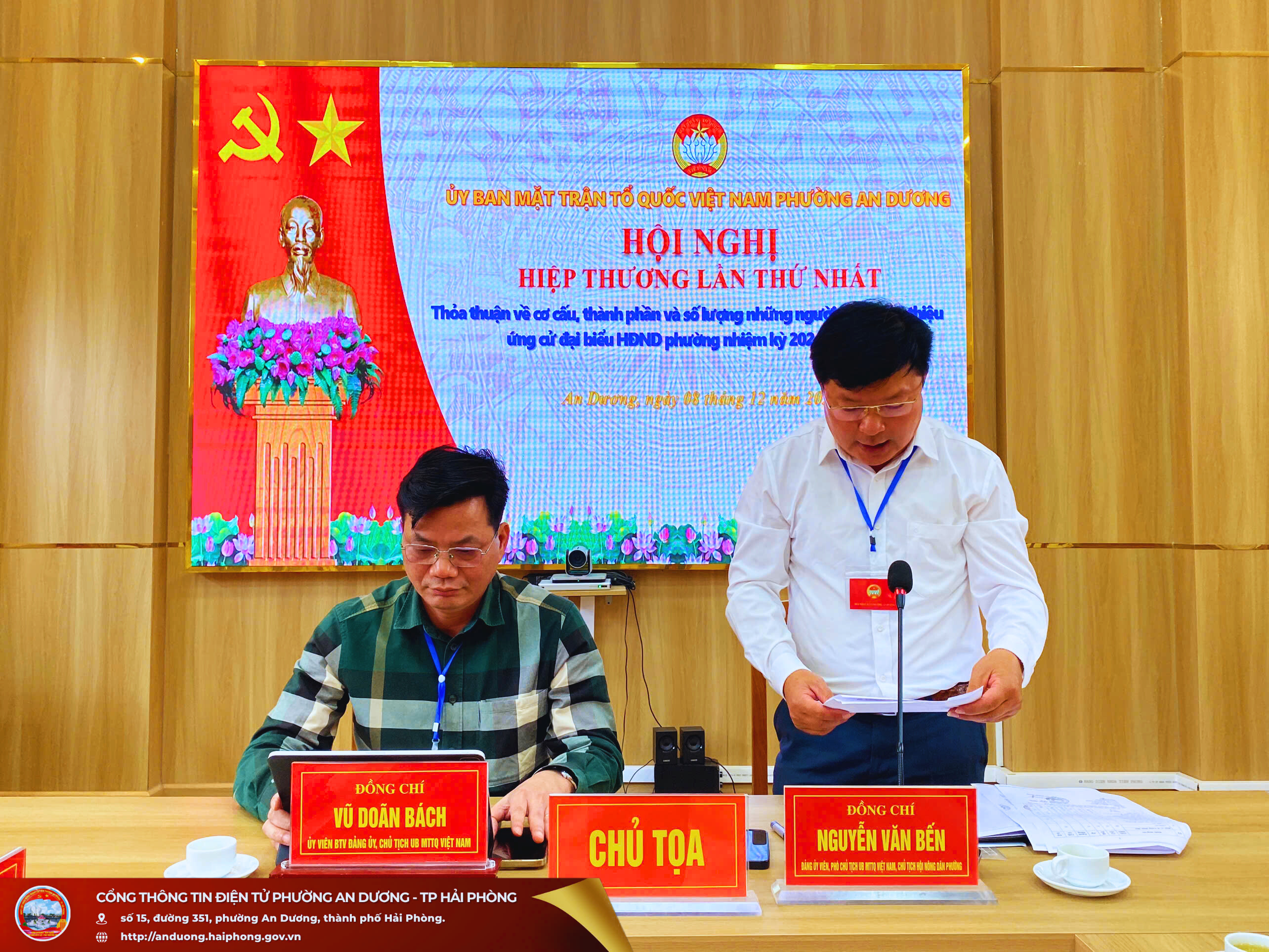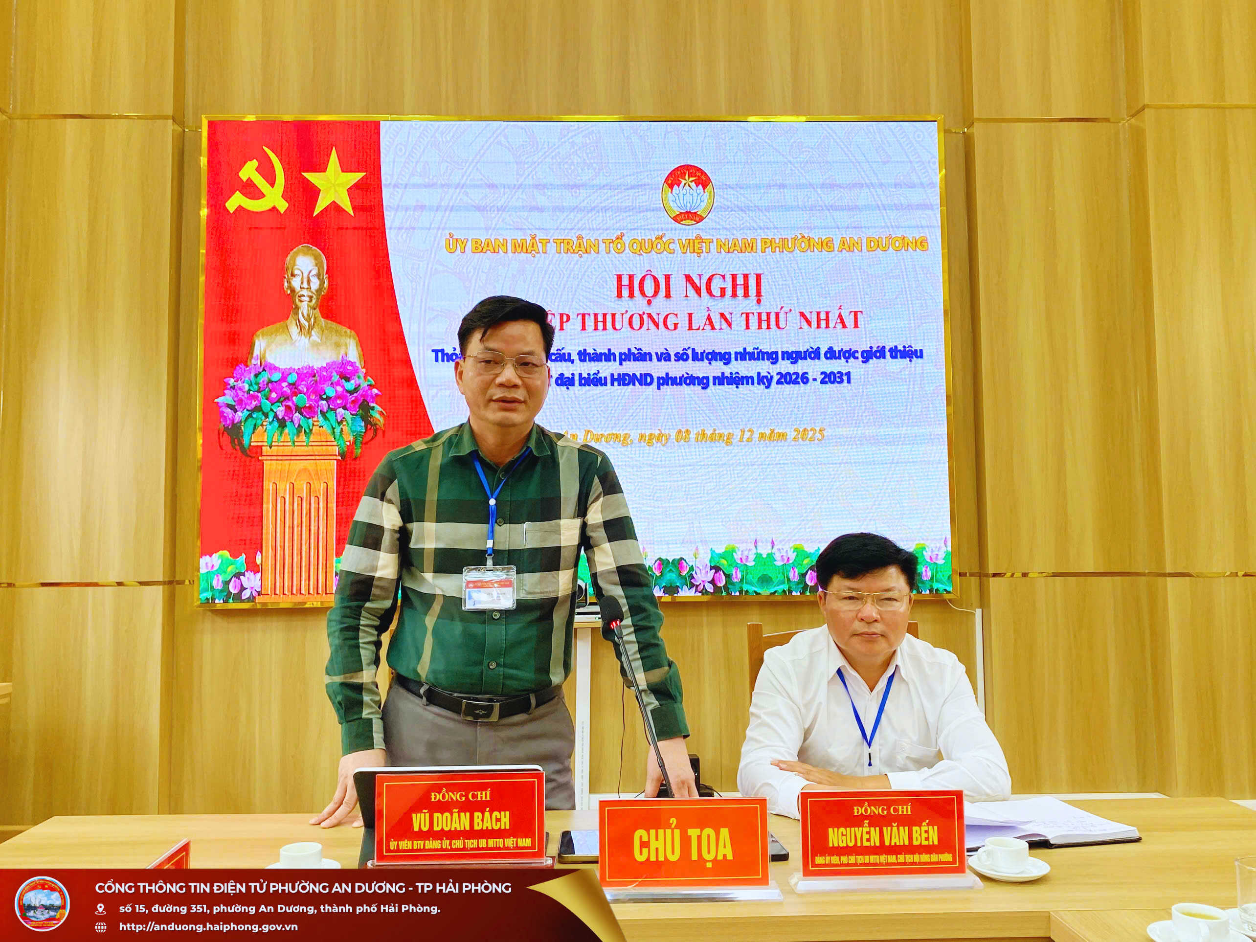 Chiều ngày 8/12, Ban Thường trực Ủy ban MTTQ Việt Nam phường An Dương tổ chức Hội nghị hiệp thương lần thứ nhất nhằm thảo thuận về cơ cấu, thành phần và số lượng người được giới thiệu ứng cử đại biểu HĐND phường nhiệm kỳ 2026 - 2031.