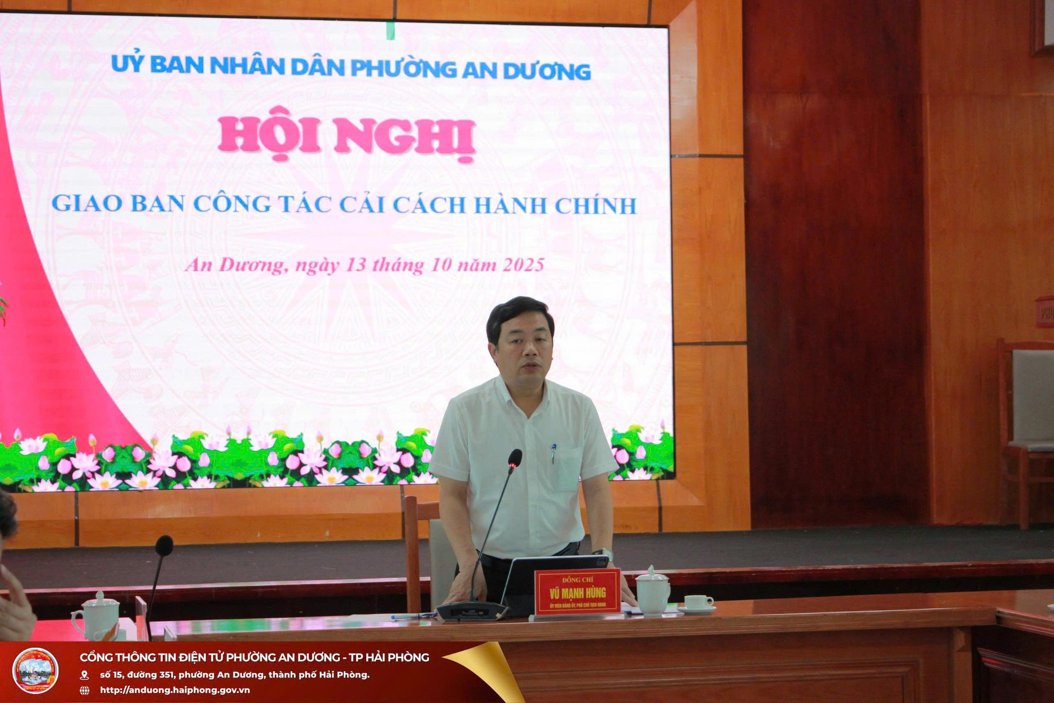 Chiều 13/10, UBND phường An Dương tổ chức Hội nghị giao ban công tác cải cách hành chính, đồng chí Vũ Mạnh Hùng - Phó Chủ tịch UBND phường chủ trì hội nghị.