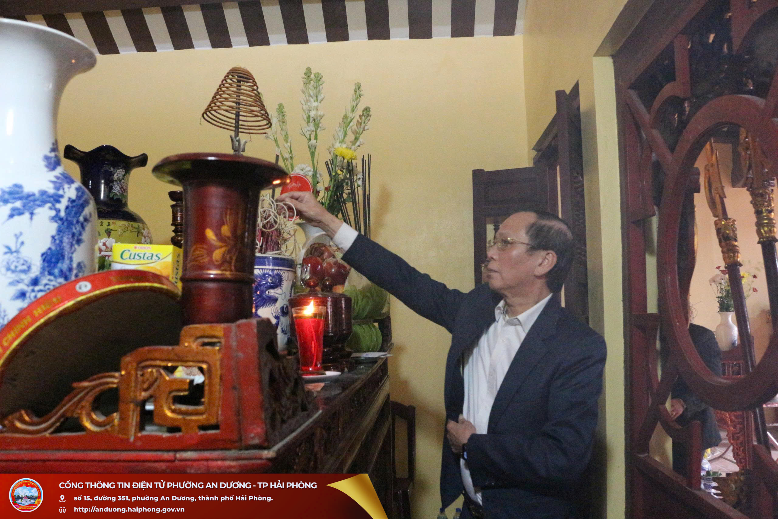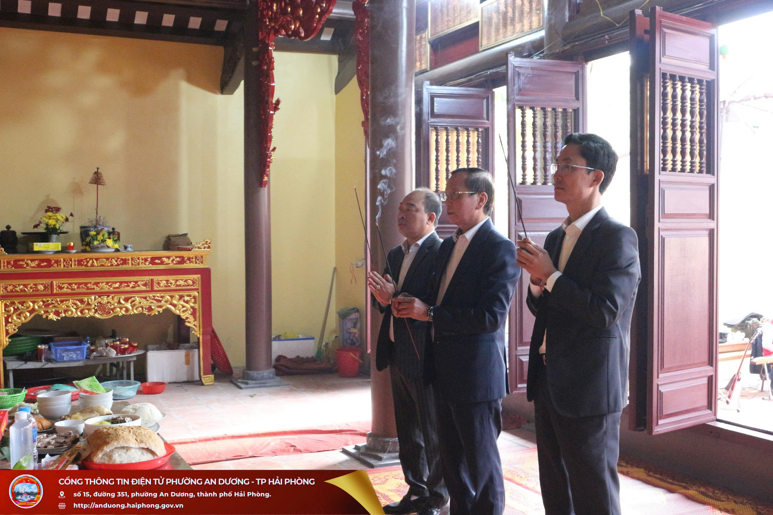 Sáng ngày 31/12, Đoàn công tác của Đảng ủy, HĐND, UBND, Ủy ban MTTQ Việt Nam phường An Dương đã tổ chức dâng hương tại Đình Thượng (Tổ dân phố Lương Quán), Đình Cống Mỹ (Tổ dân phố Cống Mỹ) và Đình Cách Hạ (Tổ dân phố Cách Hạ), là các di tích lịch sử - văn hóa cấp thành phố trên địa bàn phường.