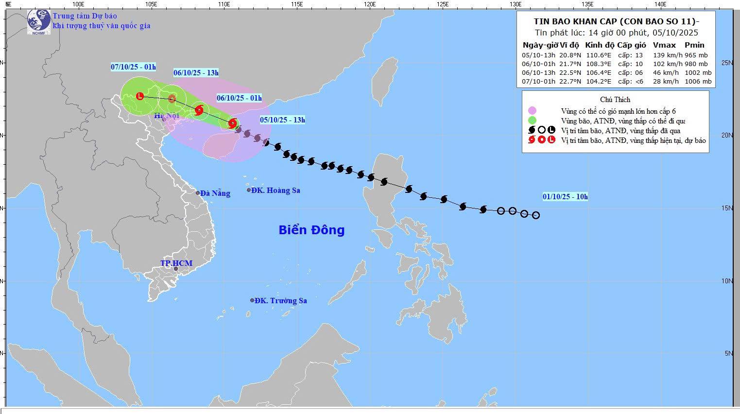 Bão số 11 đổ bộ lần 2 vào Trung Quốc ở khu vực Phòng Thành (tỉnh Quảng Tây) (lần 1 ở Lôi Châu), các khu vực đất liền của Việt Nam không còn nguy cơ ảnh hưởng của gió cấp 8, mưa lớn ở vùng núi và trung du Bắc Bộ tập trung vào buổi chiều tối và đêm 06/10.